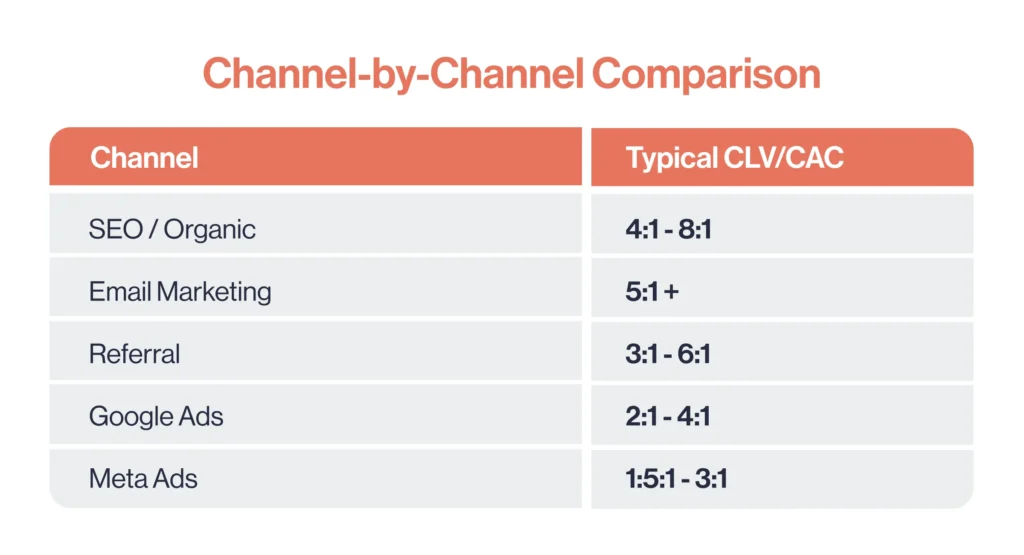 Then calculate CLV and CAC separately for each channel cohort. The difference between channels is almost always larger than brands expect.